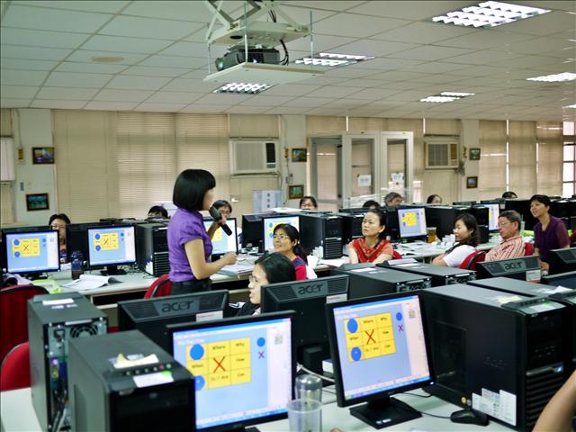 暑假的第二場研習分享,講題:電子白板融入英文領域教學之應用,感謝 SmartBoard 嘉穎科技的邀約,繼上次在臺北縣江翠國中分享之後,這次讓我有機會回到我國中的母校--臺中市居仁國中--來作分享。這場演講的環境就是臺中市教育網路中心,所以每一位老師都有電腦,坐在位置上也可以清晰看到螢幕內容,而且這是我近幾年看過贈品最豐富的研習。