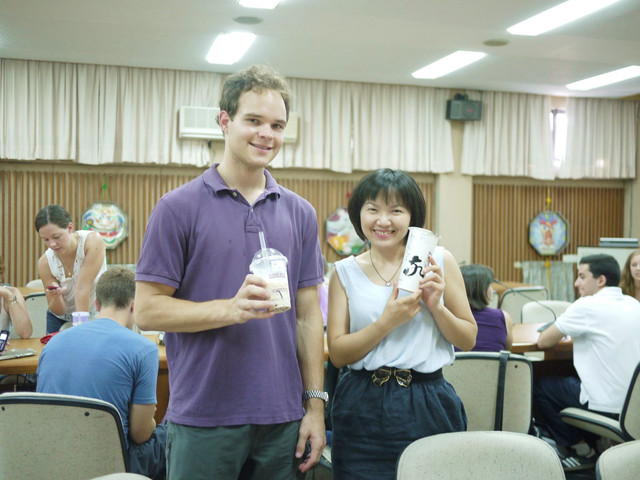 中午 Daniel 買 pearl milk tea 請我和美國在臺協會的負責人員 Kelly 喝,
